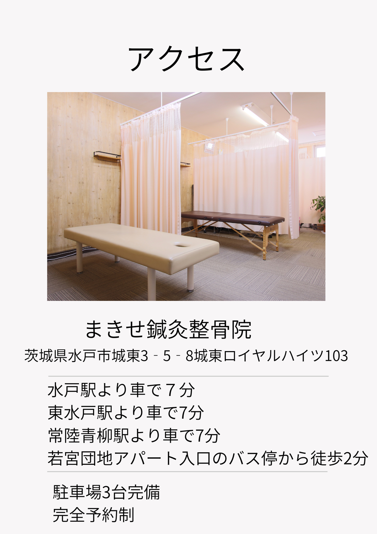 〒310-0012 茨城県水戸市城東3-5-8城東ロイヤルハイツ103 (水戸駅から車7分、東水戸駅から車7分、常陸青柳駅から車7分)